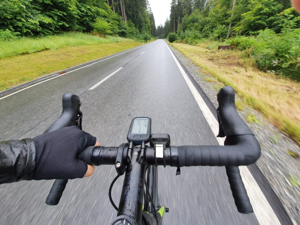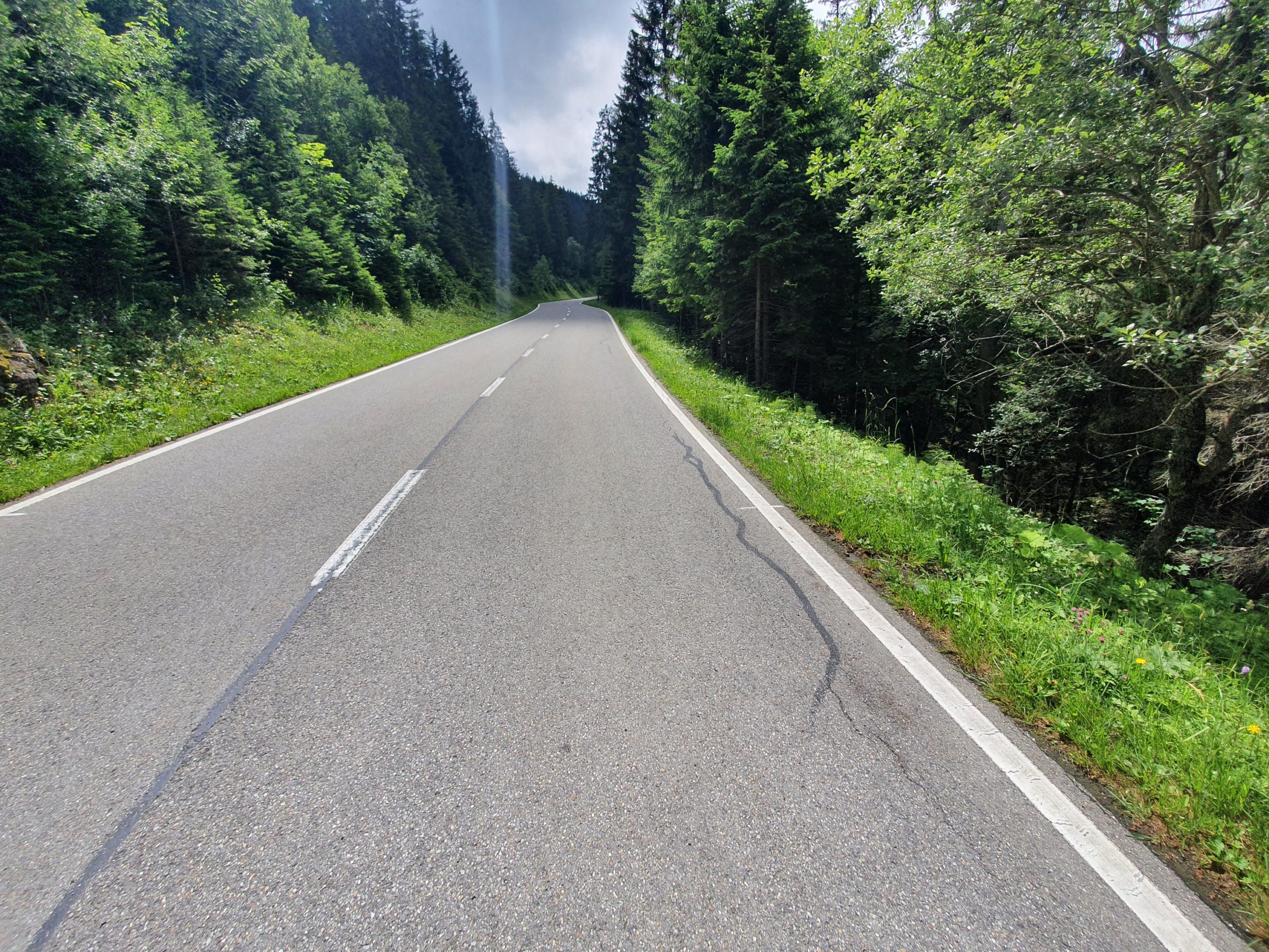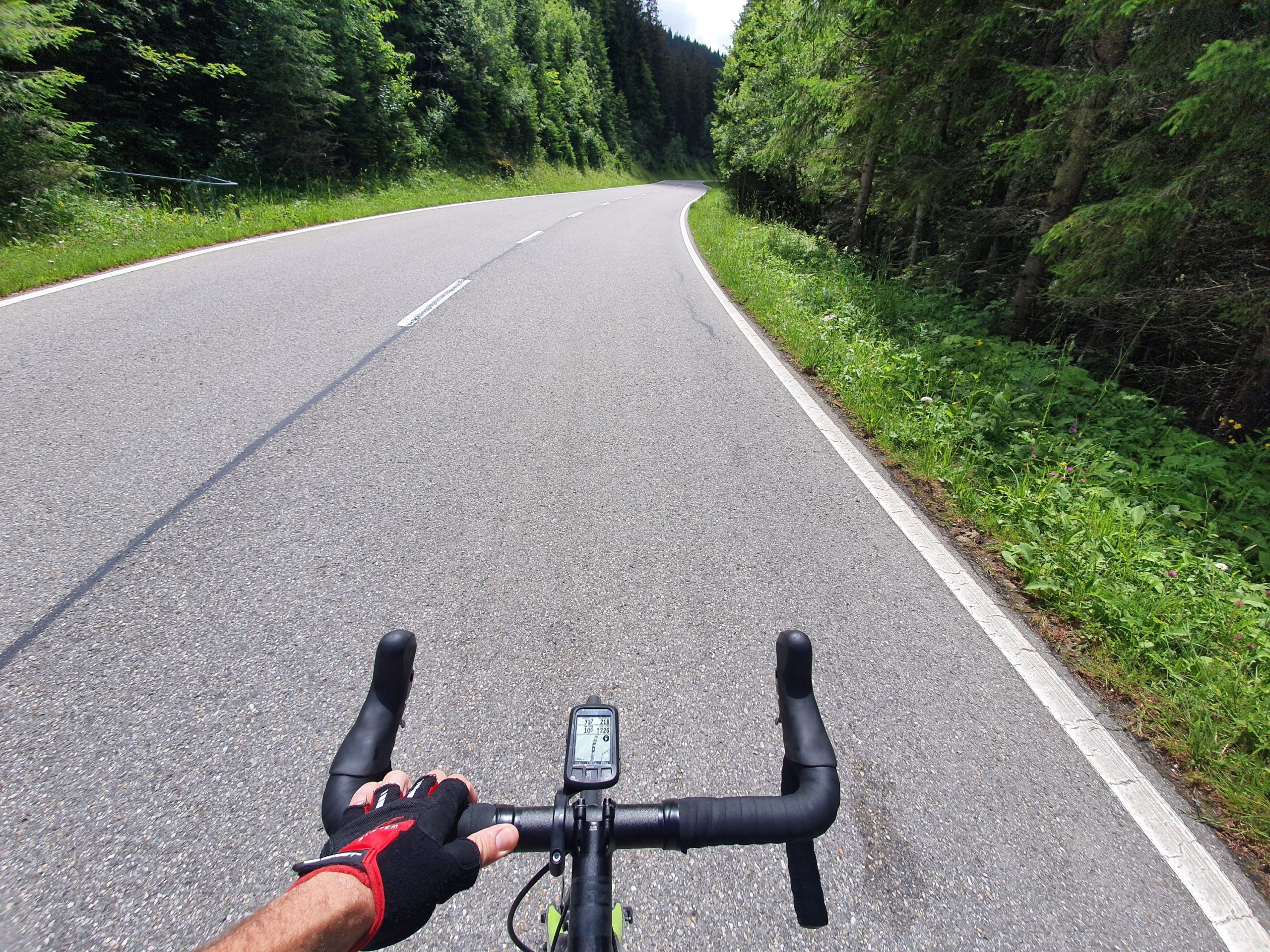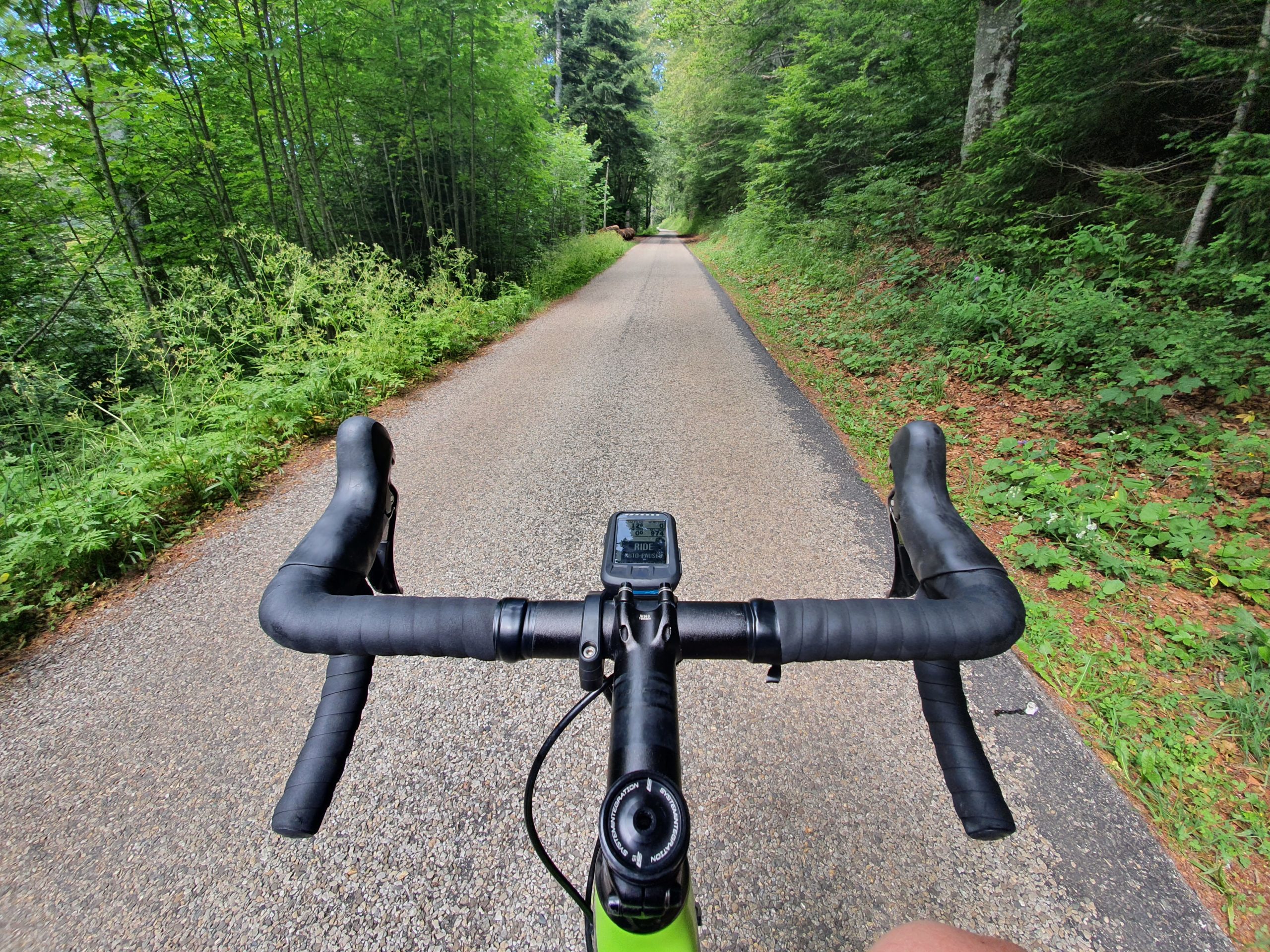 L’ombre bienvenue couvre le premier segment du col du Gurnigel. La difficulté du jour. Quelques motards viennent troubler le calme de la forêt.