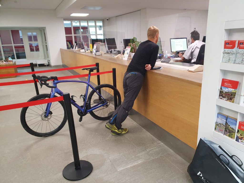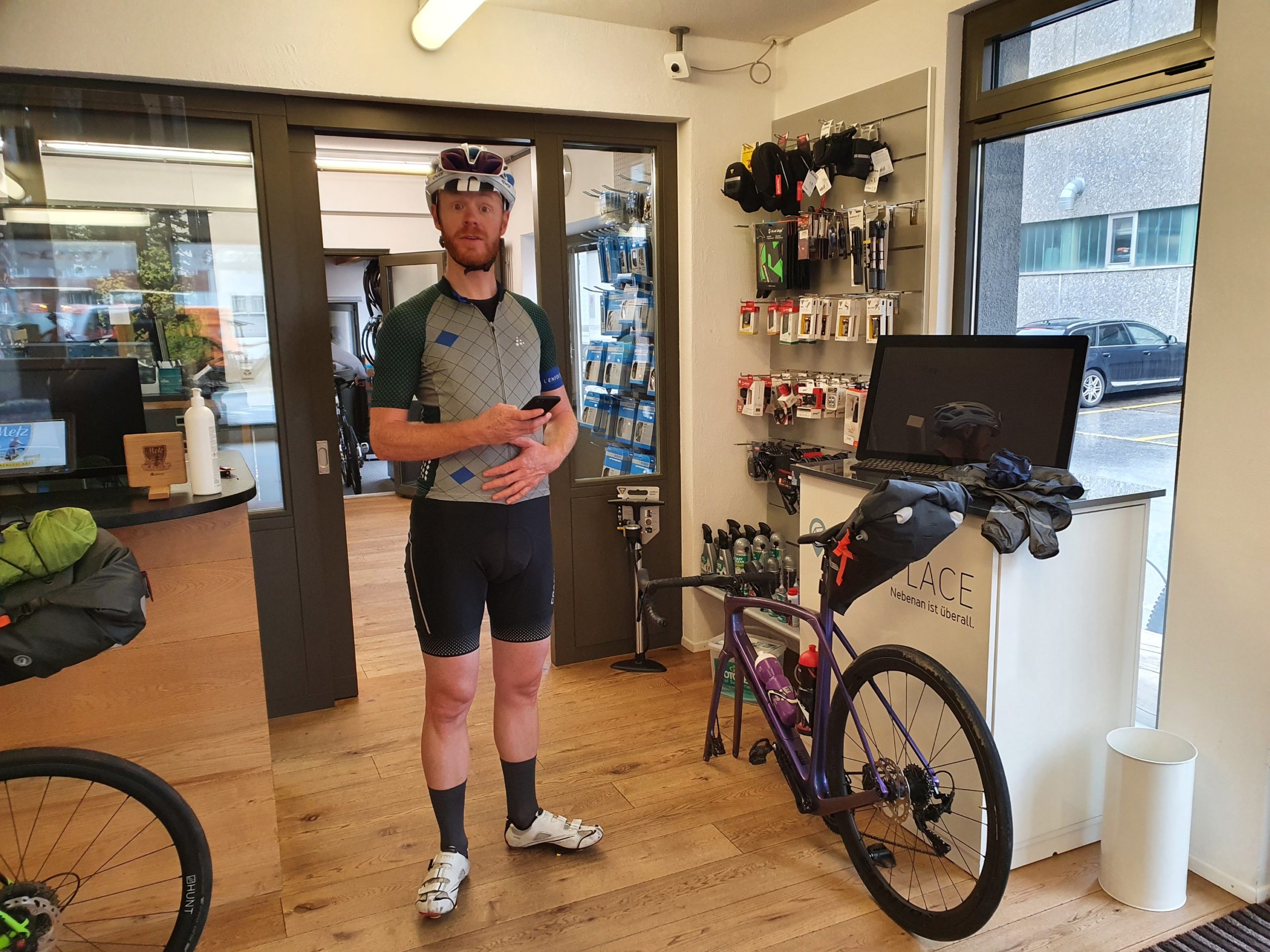 Premier objectif de la journée, réparer la roue du vélo de Marc. Le transport CFF n’ayant pas été à la hauteur de nos attentes, c’est un vélo rayé et avec un rayon cassé que l’on à retrouvé à Davos.