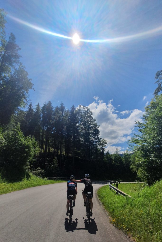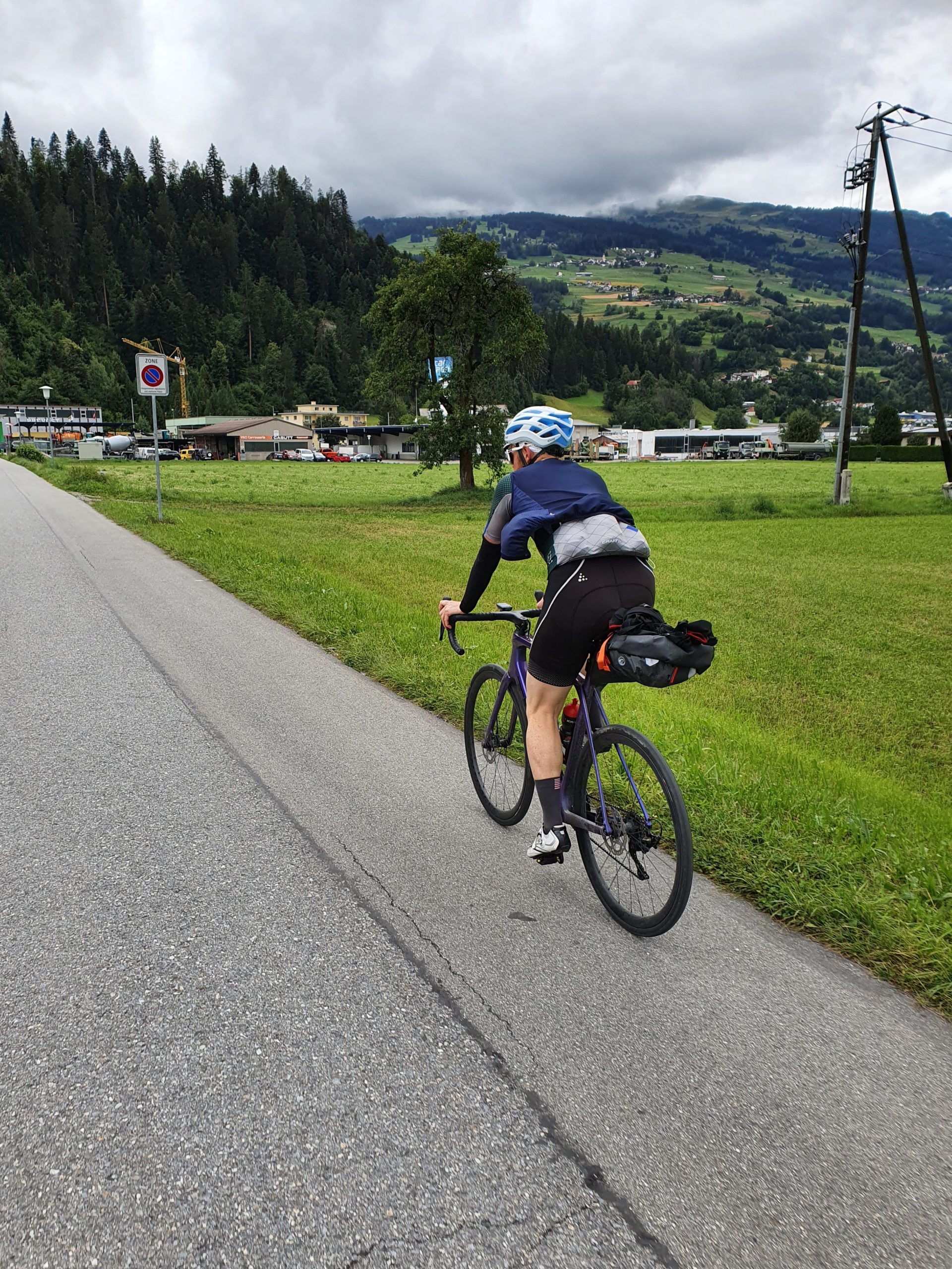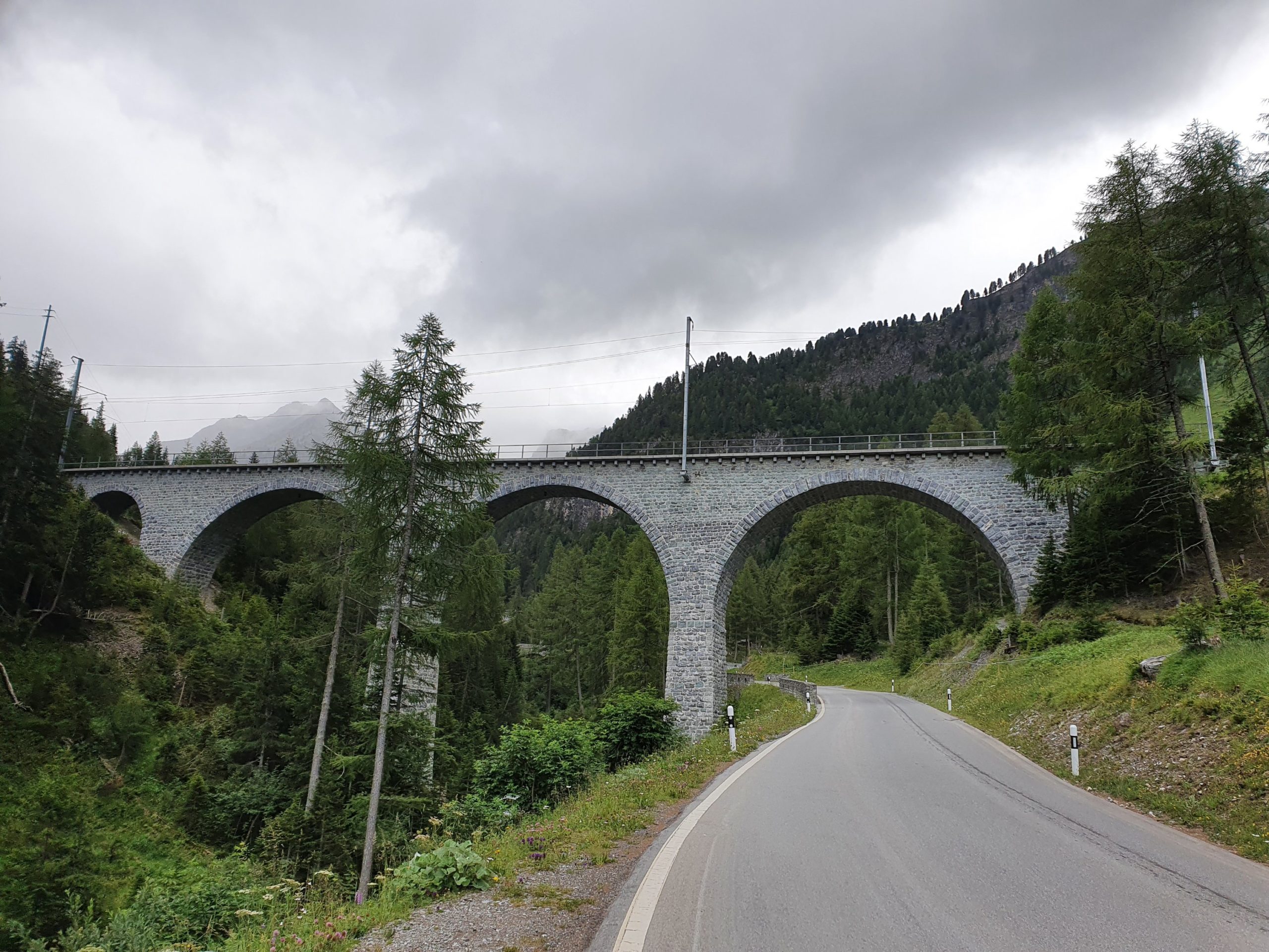 Pause pasta à Zernez, on se réchauffe et on attaque le long faux-plat avant l’ascension de l’Albula. On rencontrera en chemin un couple de Lausannois avec qui nous formerons un peloton jusqu’au pied du col.