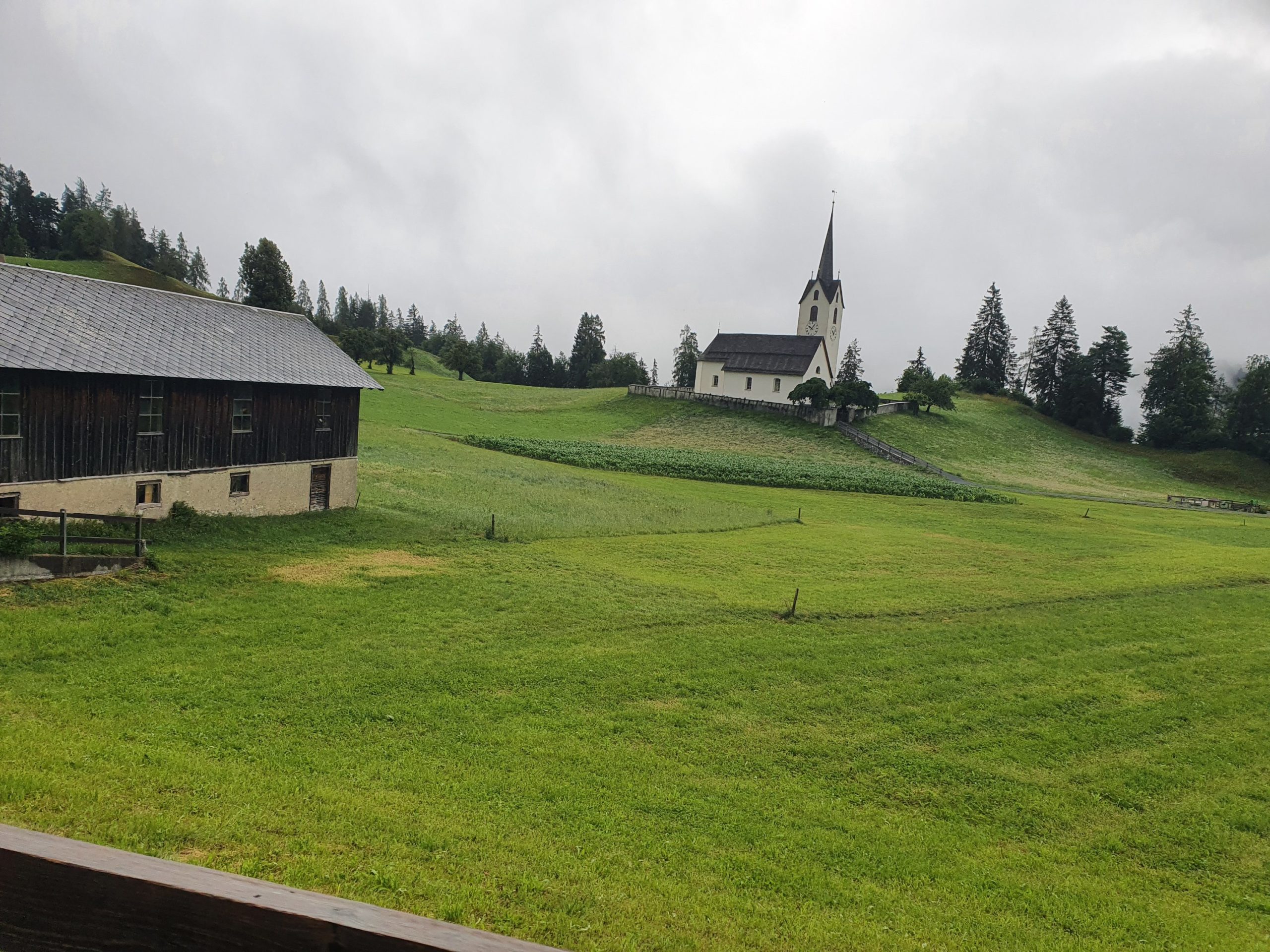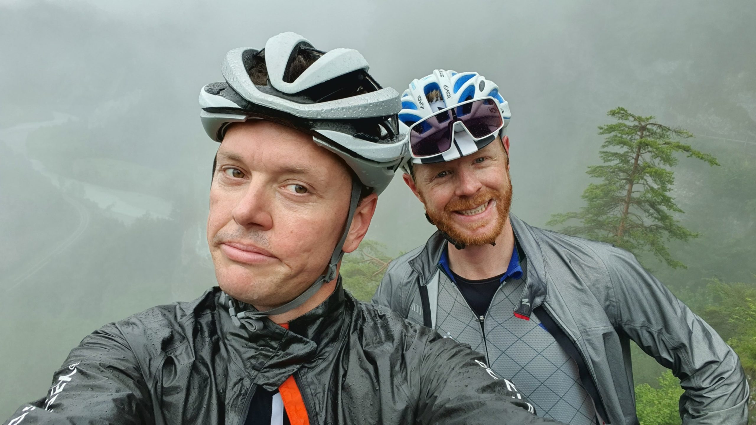 Une bruine nous suit depuis Davos, cela anime nos discussions sur les pour et les contre des couvres-chaussures.
