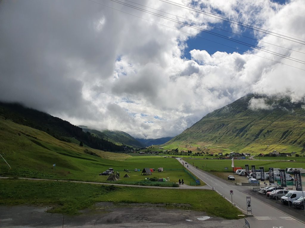La bière puis quelques habits chauds précèdent une belle descente sur Andermatt où l’on traverse littéralement un plafond nuageux. La station semble acceuilliante. On testera ce soir…
