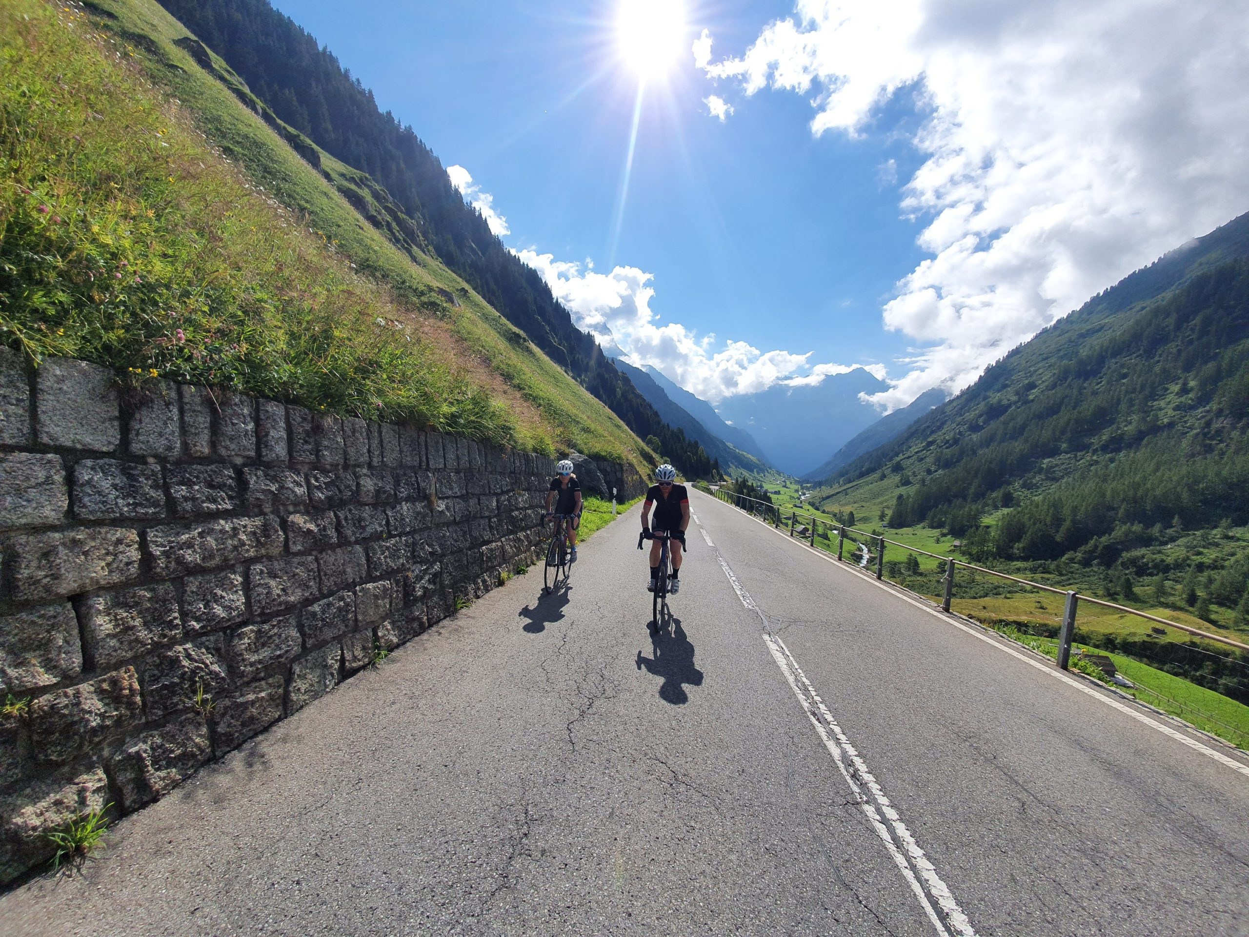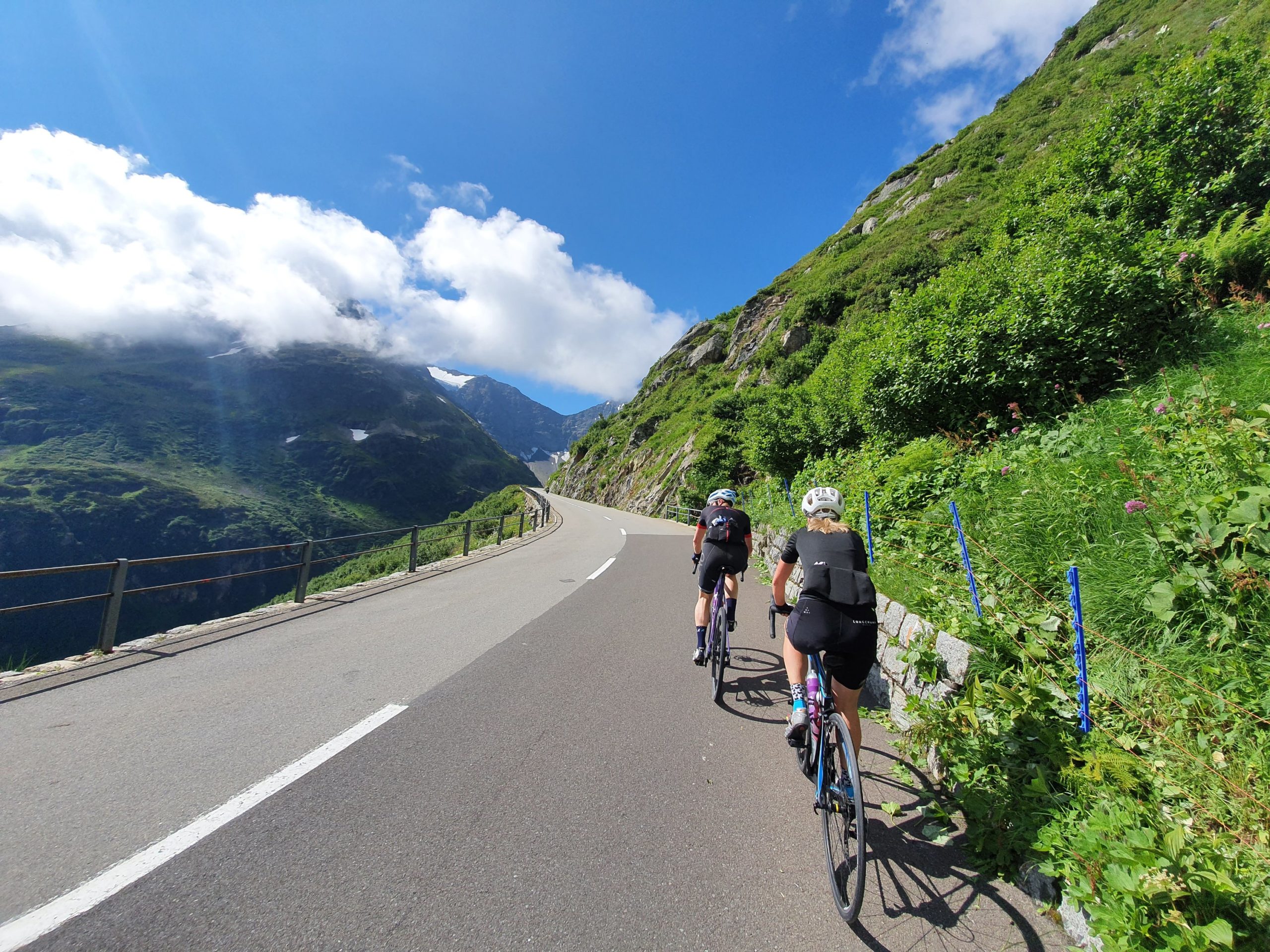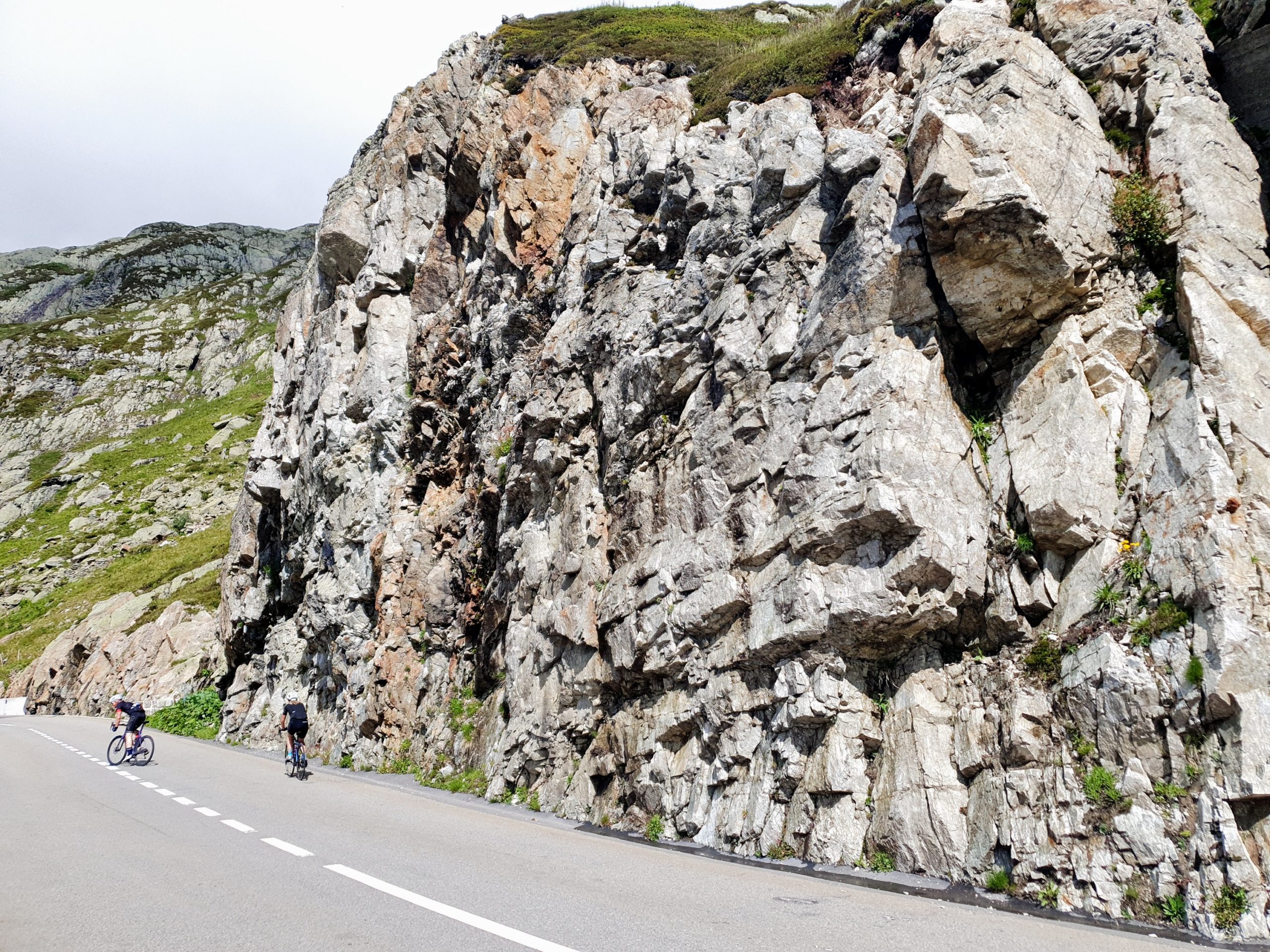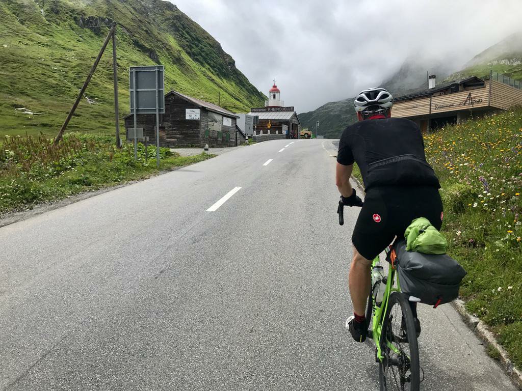 Ravitaillé on attaque donc la longue montée de l’Oberalp. Les paysages alpins se succèdent, on gère bien l’effort. La perspective d’une bière au sommet nous motive.