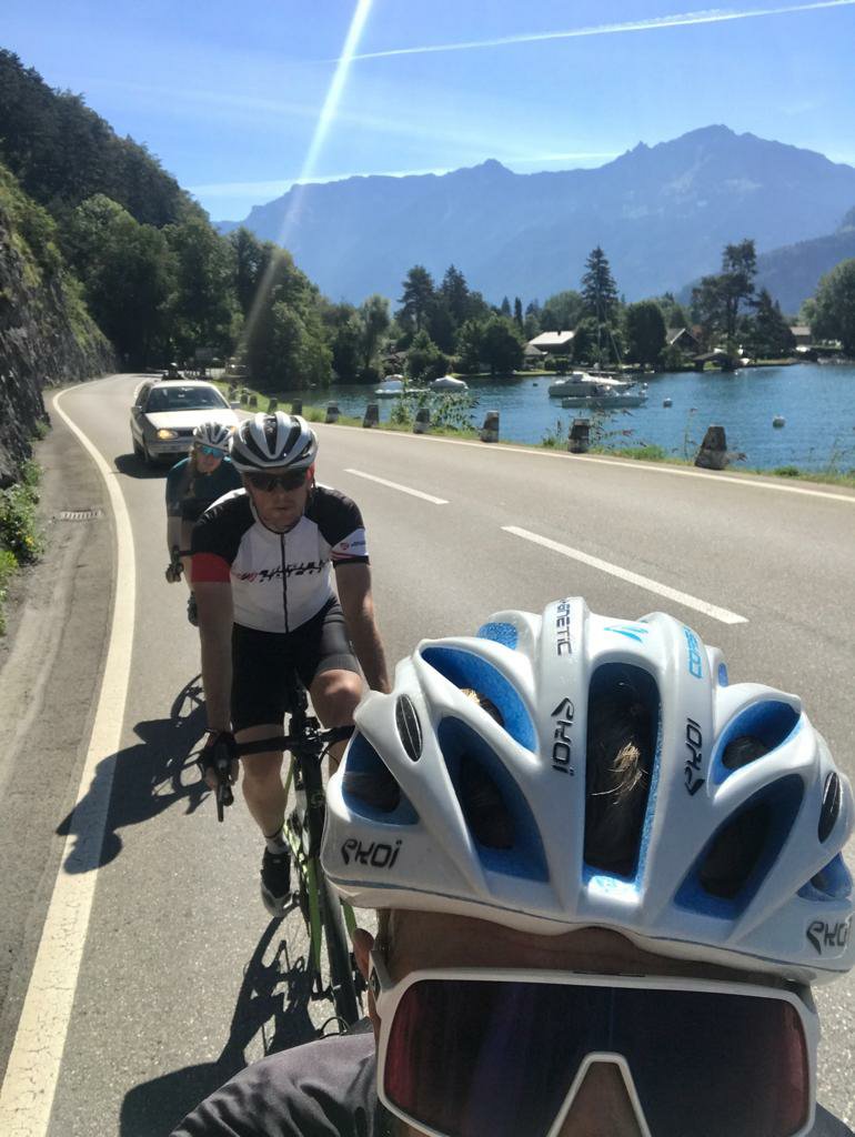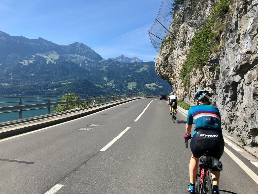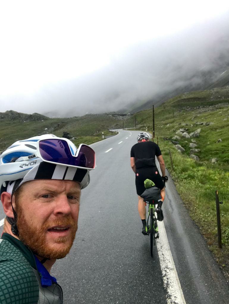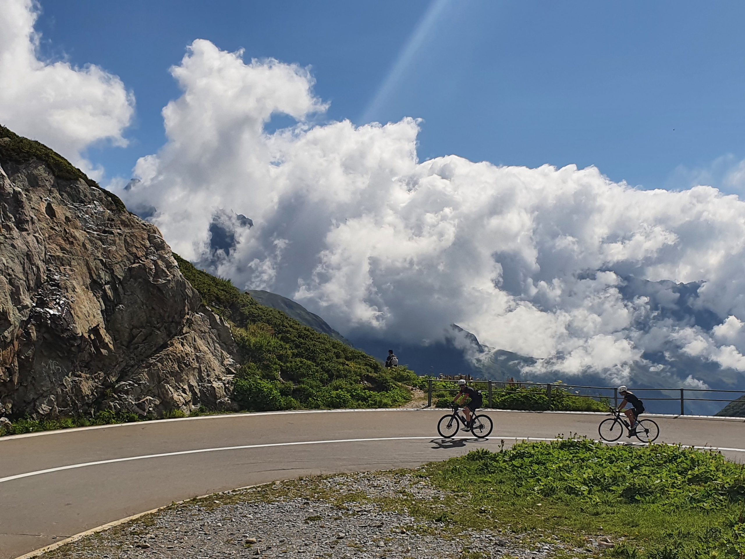Ravitaillé on attaque donc la longue montée de l’Oberalp. Les paysages alpins se succèdent, on gère bien l’effort. La perspective d’une bière au sommet nous motive.