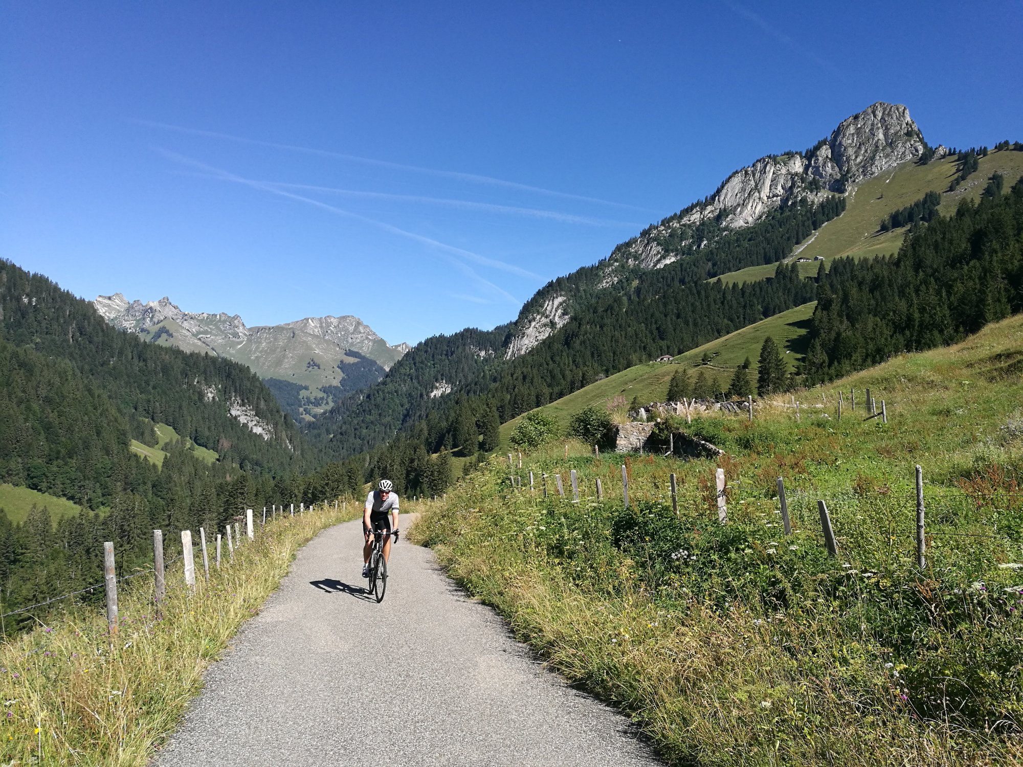 On s’enfonce dans la vallée et commence une longue ascension jusqu’au barrage d’Hongrin. Les paysages sont splendides et on retrouve des sommets connus. On avait pas vécu cela en Appenzell 😀.
